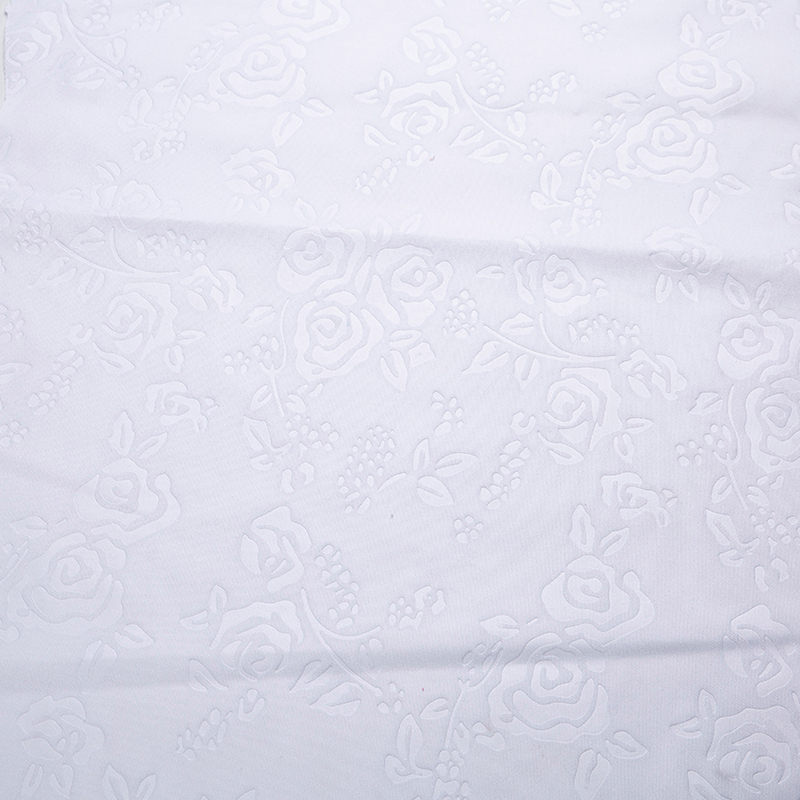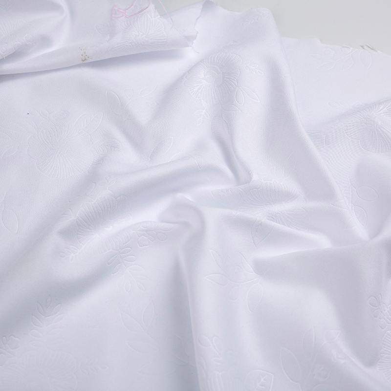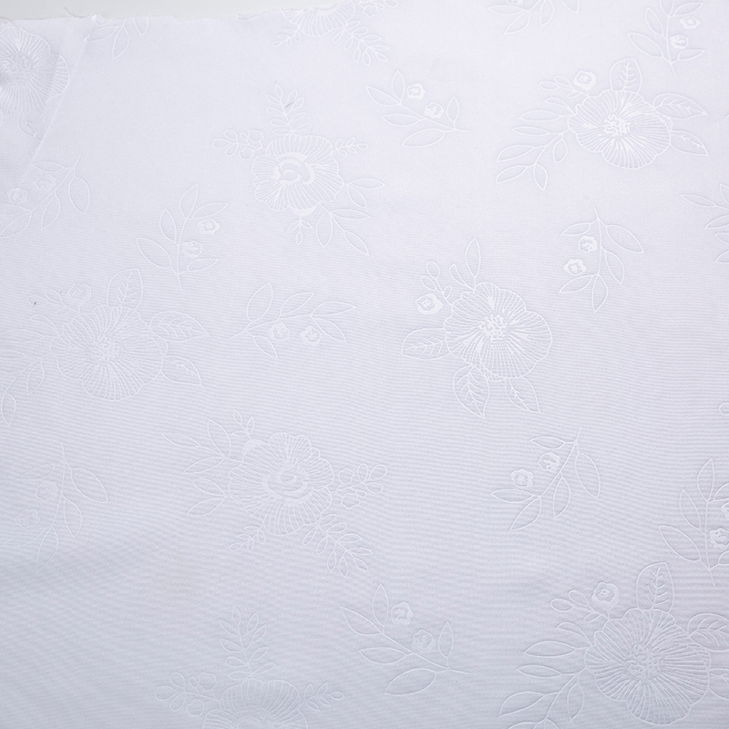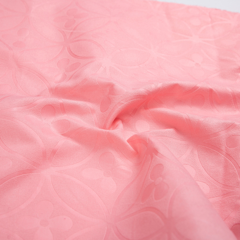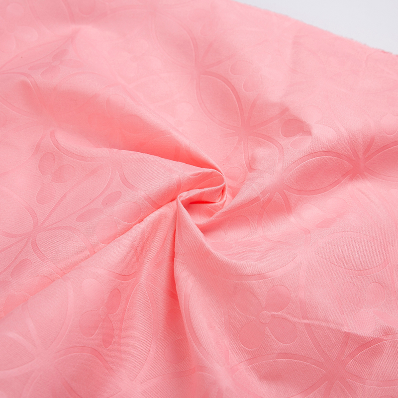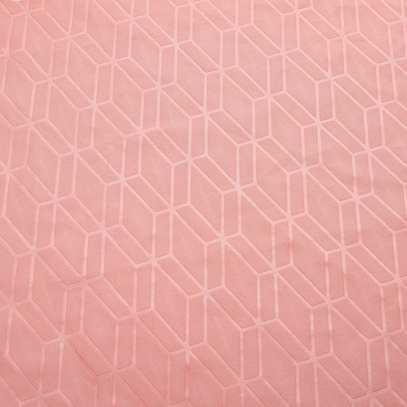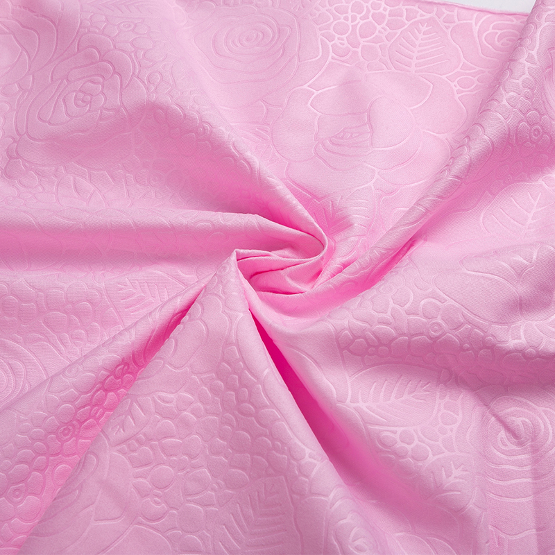 全滌壓花面料是在染色織物的基礎上,用高溫金屬花棒在織物表面壓出圖案。