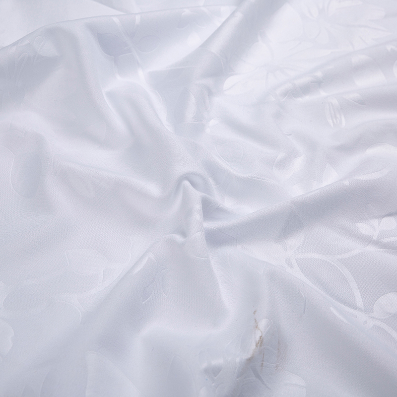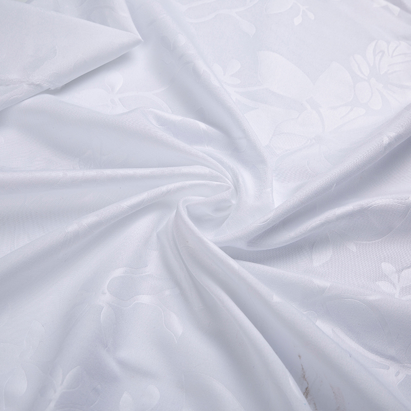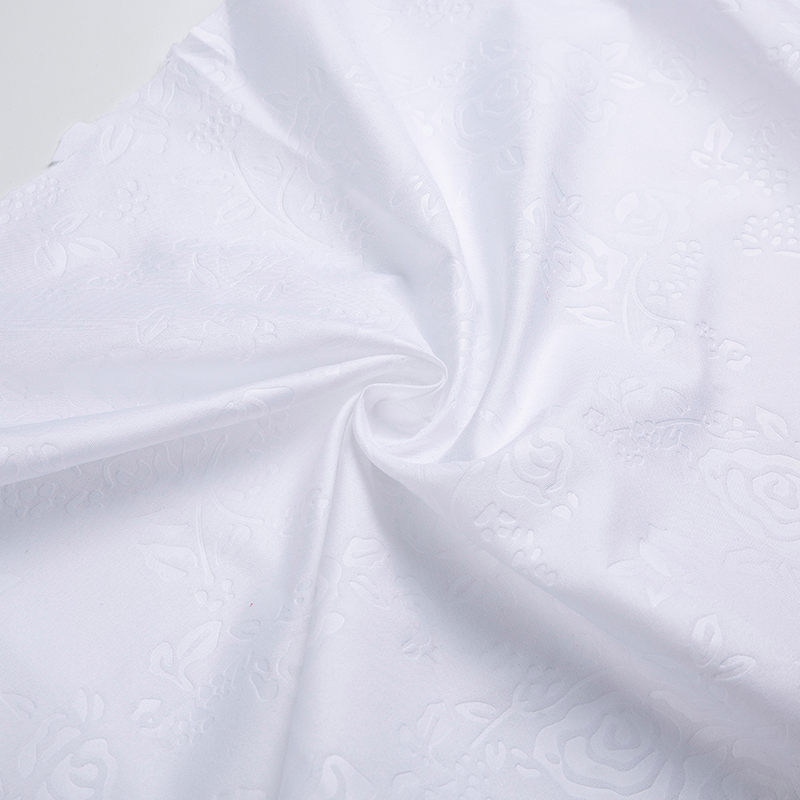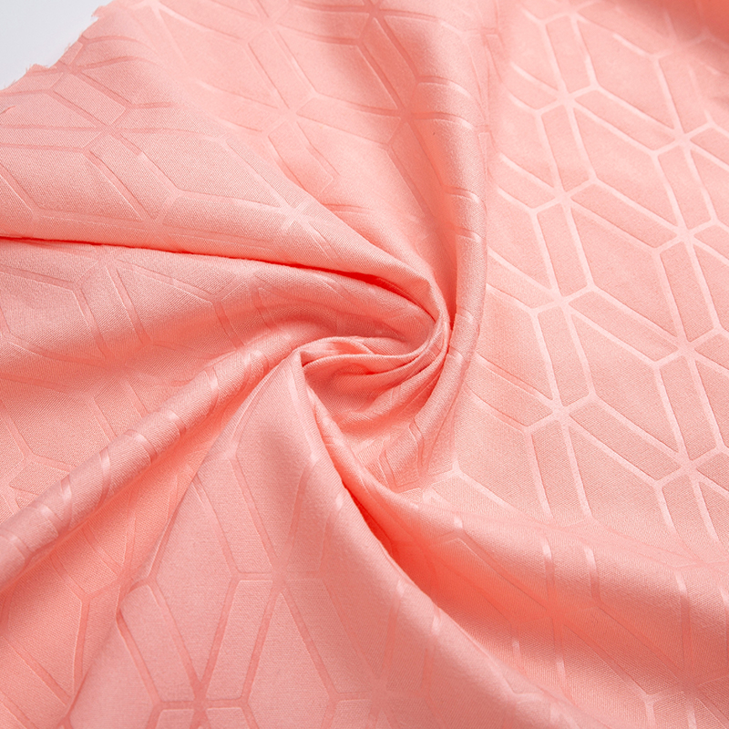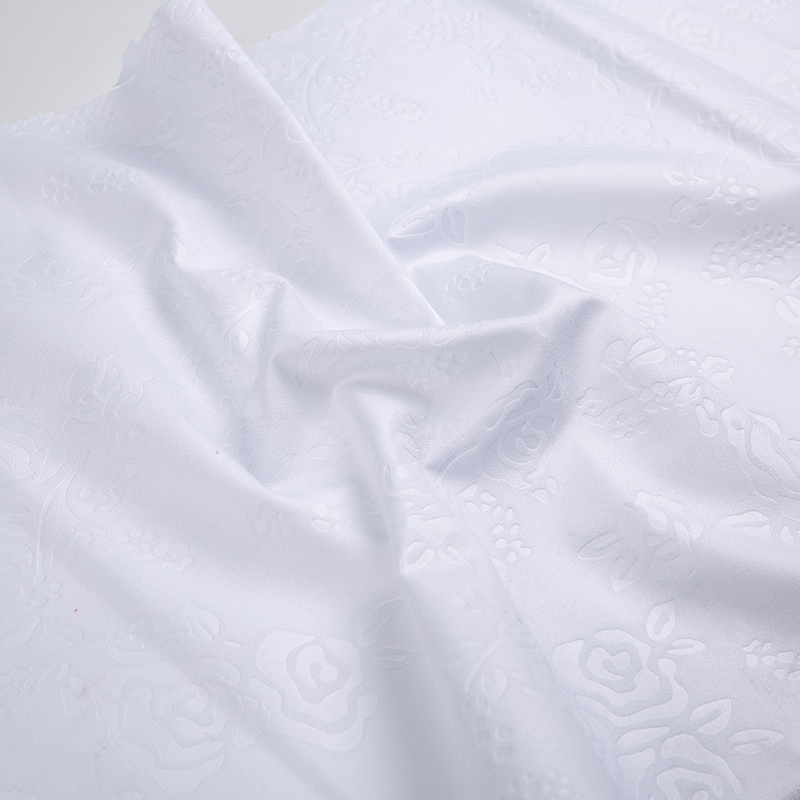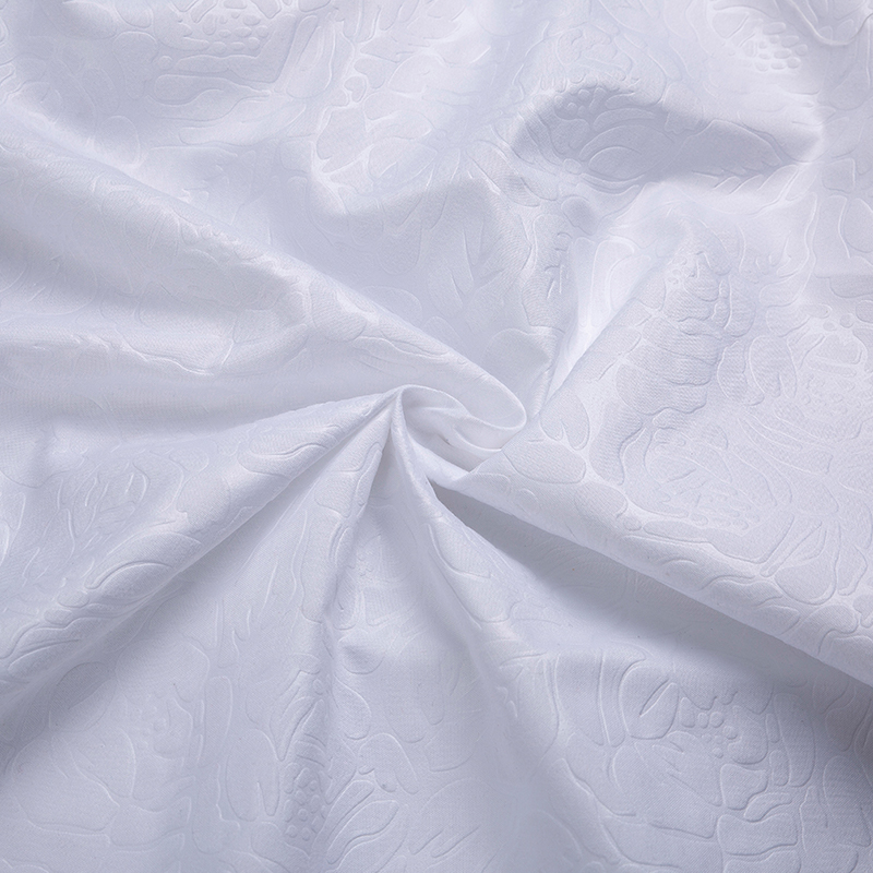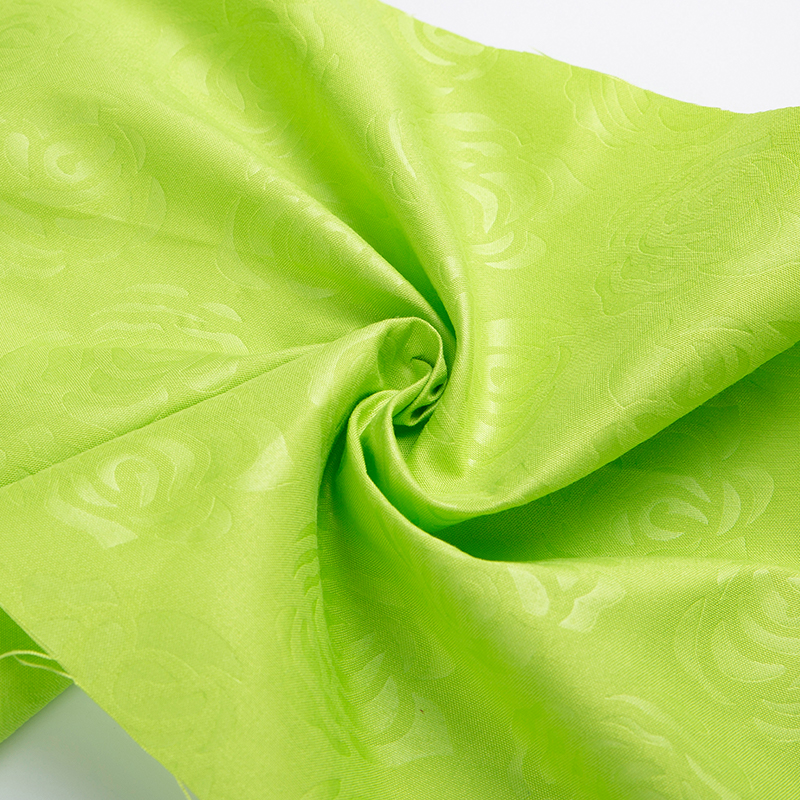 全滌壓花面料是在染色織物的基礎上,用高溫金屬花棒在織物表面壓出圖案。