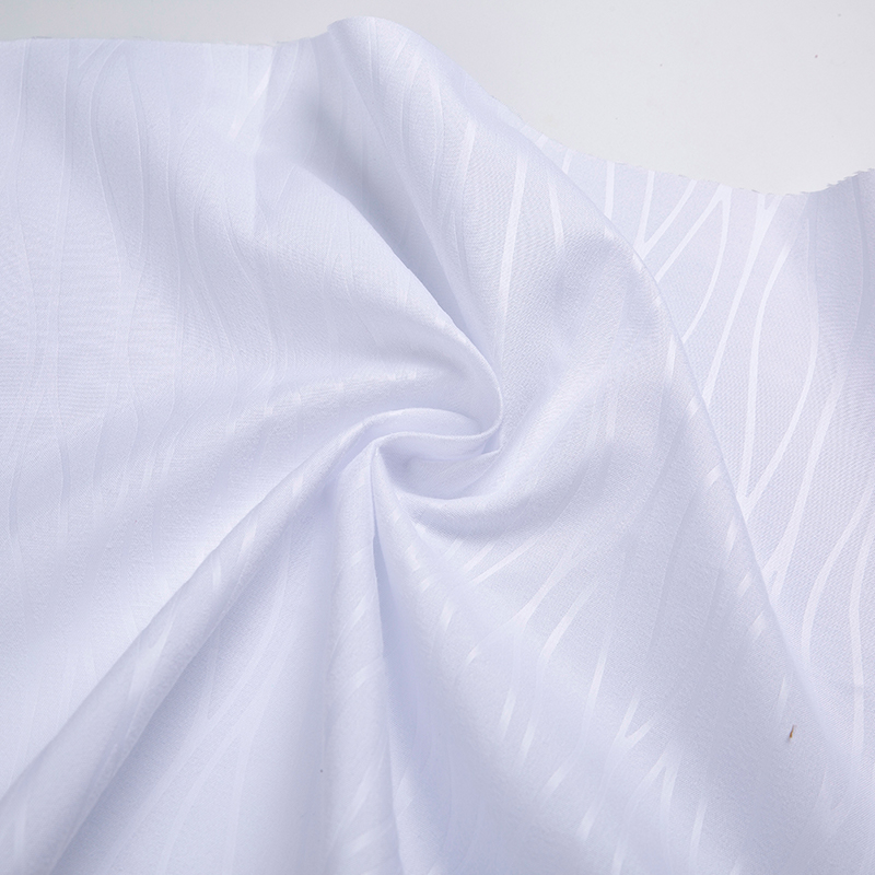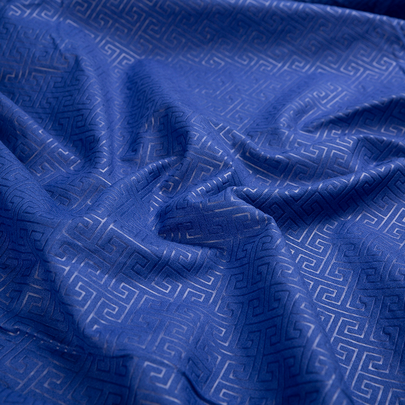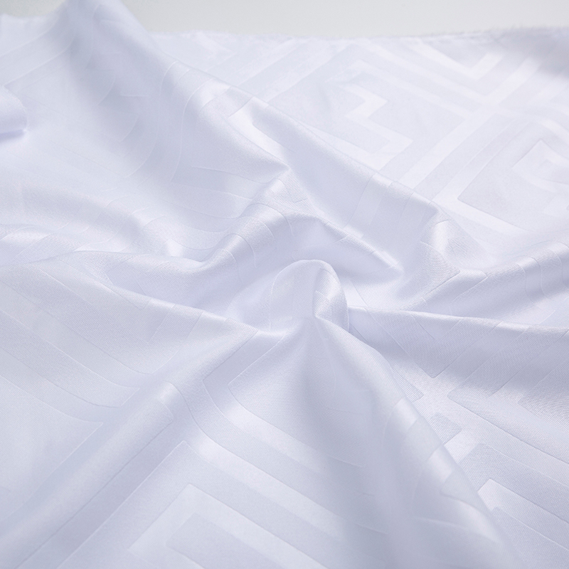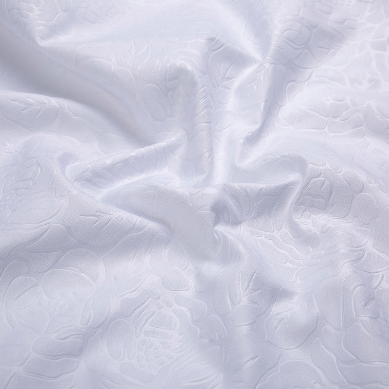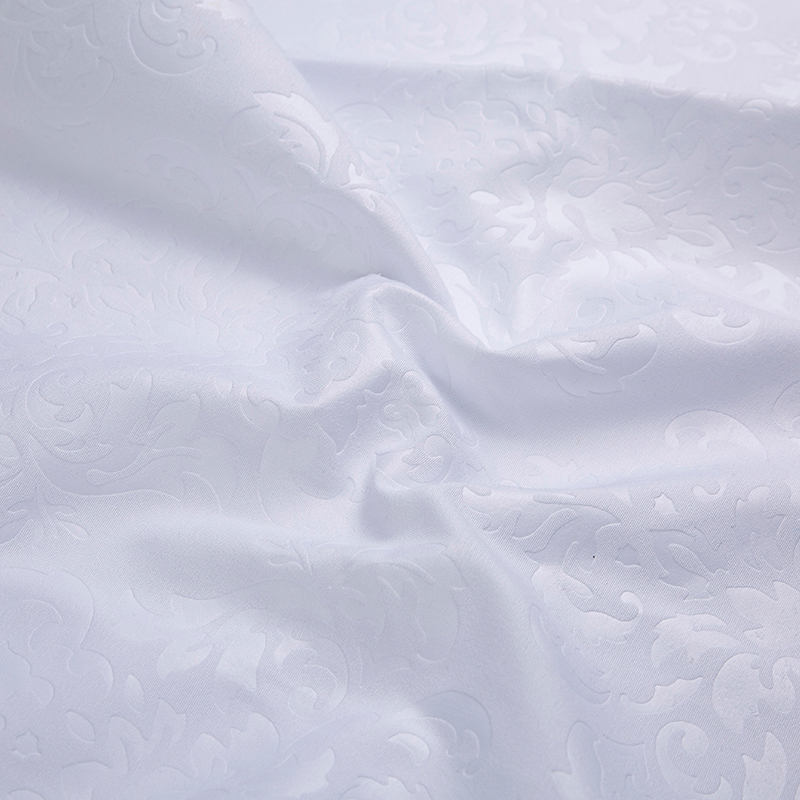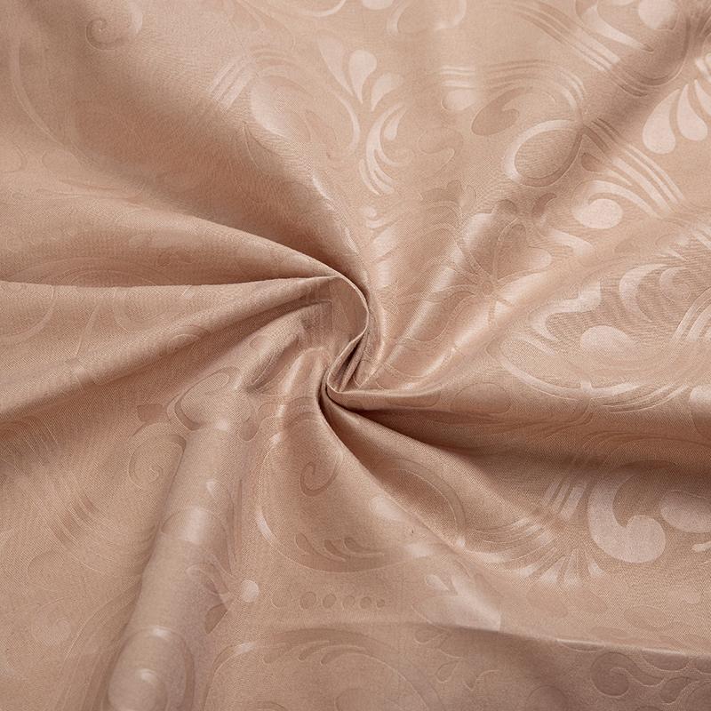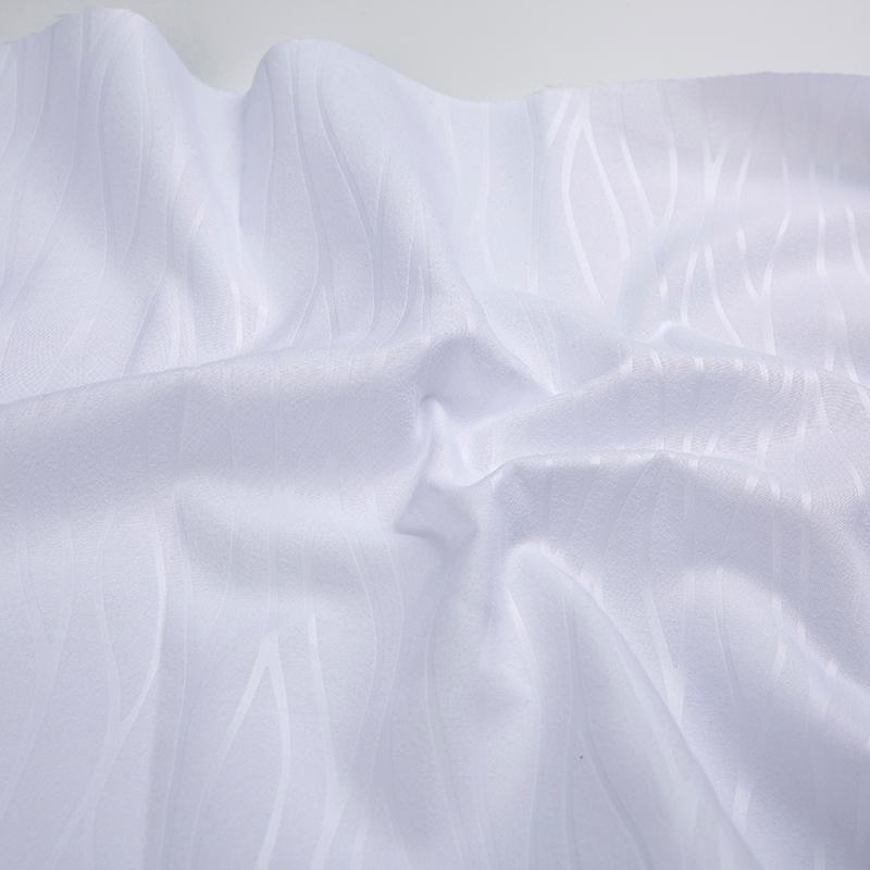 全滌壓花面料是在染色織物的基礎上,用高溫金屬花棒在織物表面壓出圖案。