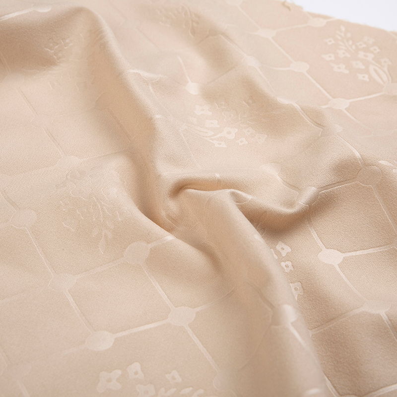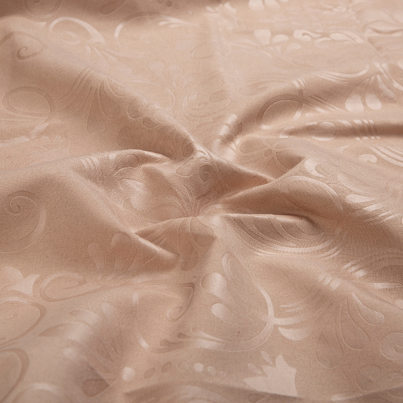 這種聚酯壓花織物是由99.99%的聚酯長絲織成的?;疑椢锉砻婺ド昂?,成品織物會變得細膩、柔軟,仿佛桃子的表皮一般。同時,滌綸織物具有更好的保溫性能。