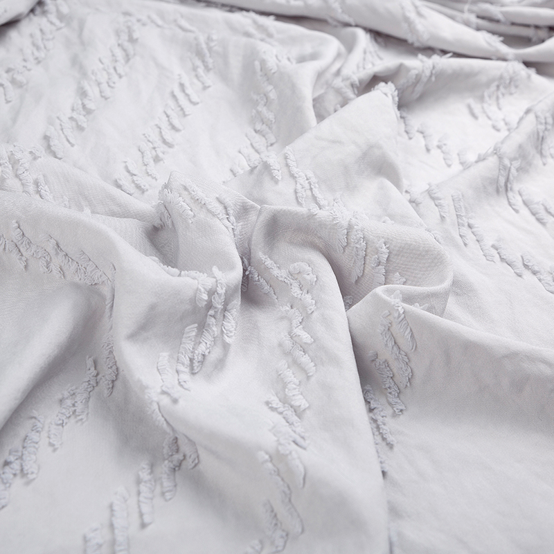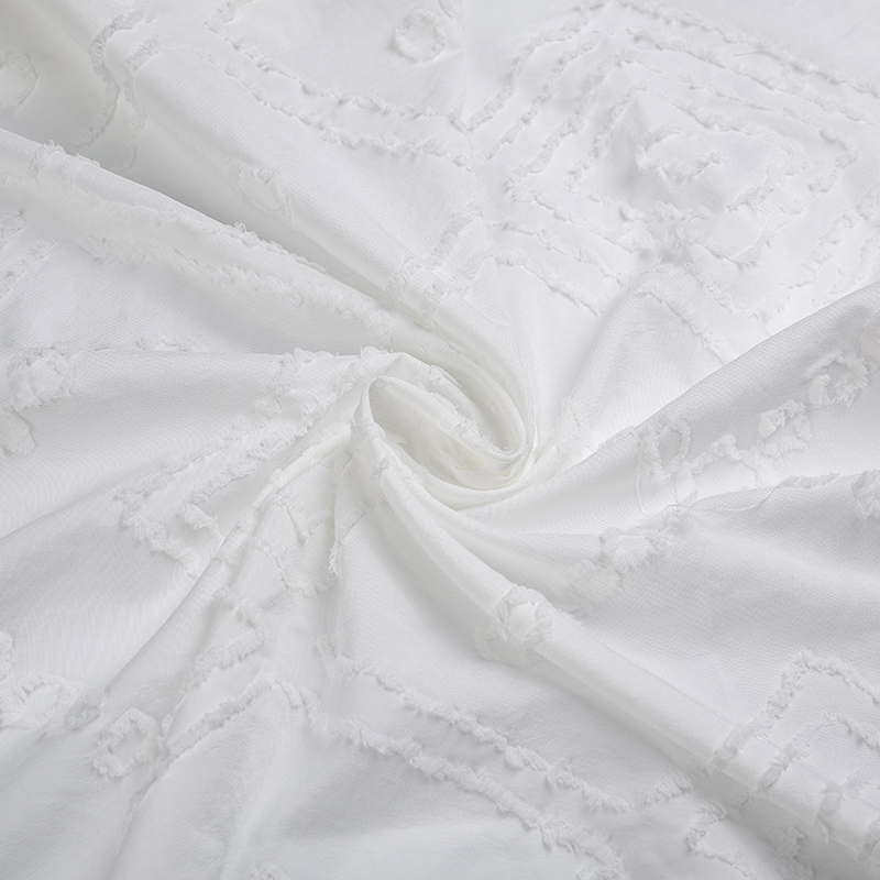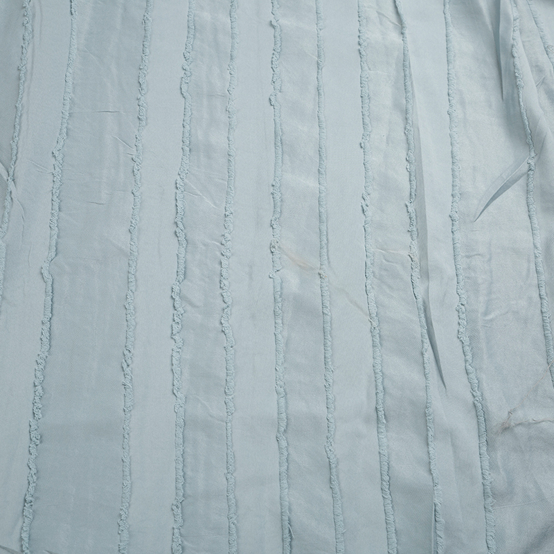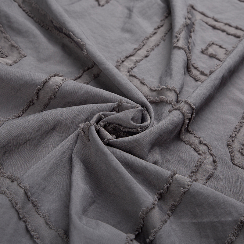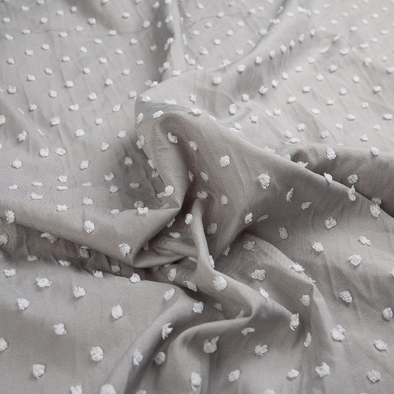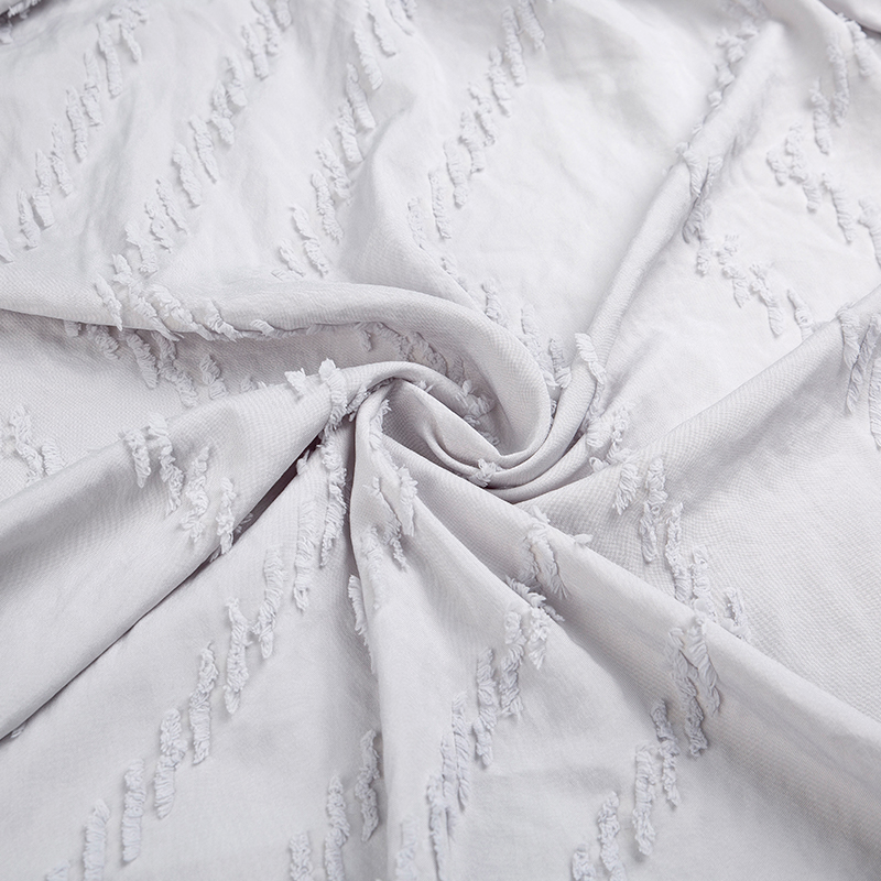 全滌剪花面料是我們公司新開發的產品。這種面料經過復雜的織造工藝和后處理,可以在表面產生凸起的花紋,而且這種花紋永遠不會消失。