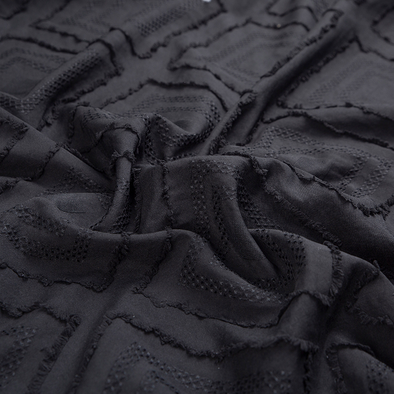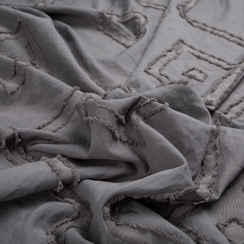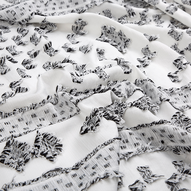 更為復雜的全滌剪花圖案可以加入陽離子原料,在染色過程中,圖案和底面最終可以呈現出兩種不同的色彩對比效果。